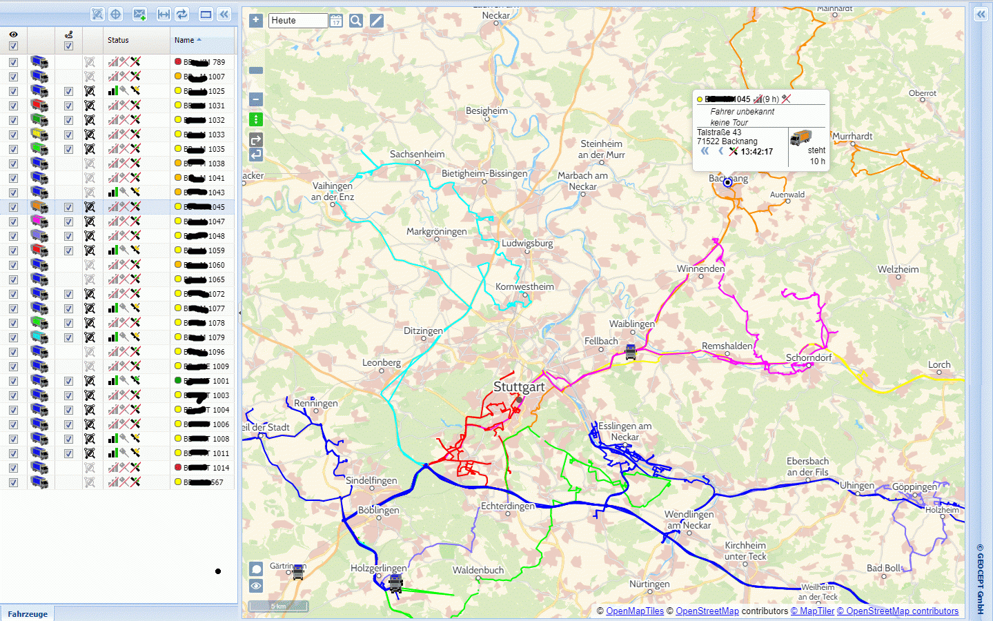 Egal welcher Fahrzeugtyp: Wir übertragen die aktuelle Position in Echtzeit und stellen die komplette Fahrspur übersichtlich in unserem Webportal dar.